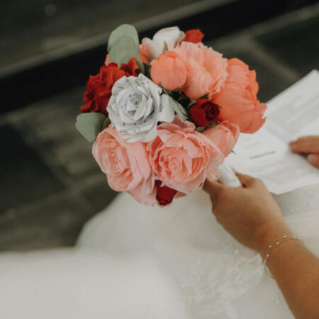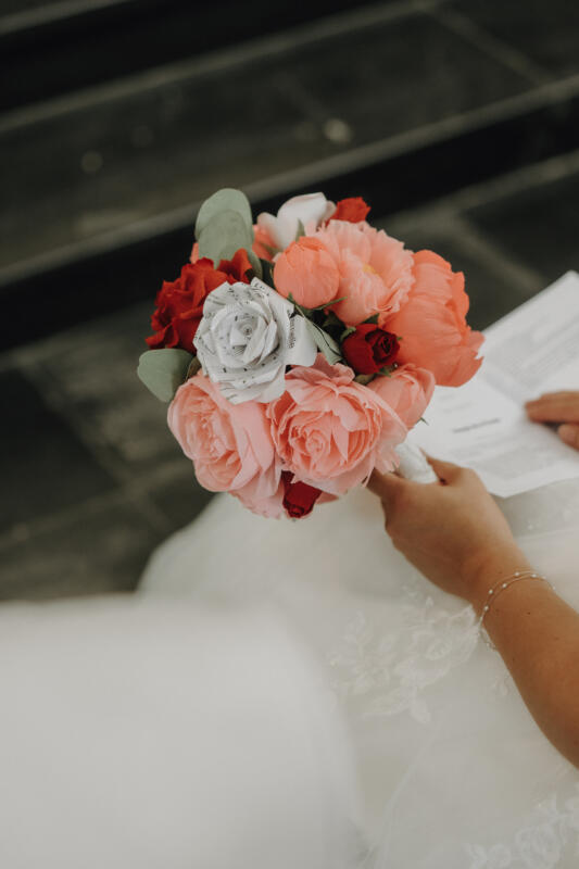 Car chaque création, composition, bouquet créé est personnalisé. On choisit ce qui nous plaît, ses fleurs préférées peu importe la saisons (tout en restant eco-responsable 😉 ), les couleurs, le style, … jusqu’à créer des fleurs à partir de votre livre préféré, ou de papier à musique… c’est du sur-mesure.
